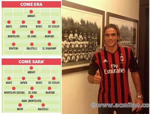 FOTO MILAN MATRI – Alessandro Matri è stato l’ultimo acquisto del Milan ma non sarà forse l’ultimo. Sul taccuino di Galliani ci sono altri nomi importanti fra cui Kakà e Kucka. Proviamo a ridisegnare il 4-3-1-2 con l’innesto dei nuovi e dei possibili arrivi. Dietro la situazione rimarrebbe sostanzialmente invariata. A centrocampo De Jong rimarrebbe unico riferimento in mezzo a Montolivo (o Kucka) e Muntari dall’altra parte. Dietro le punte spazio a Kakà con Balotelli e Matri pronti a colpire. Di varianti e alternative ce ne sono comunque molte basti pensare a El Shaarawy e Saponara, due che non hanno niente da invidiare ai possibili titolari. Adesso toccherà ad Allegri studiare il Milan migliore.