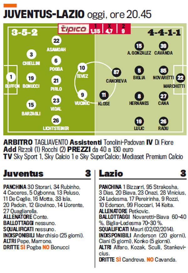 JUVENTUS LAZIO PROBABILI FORMAZIONI TEVEZ KLOSE FOTO – Juventus e Lazio oggi anticiperanno la seconda giornata di campioanato. Remake della Supercoppa Italiana quando i bianconeri vinsero per quattro a zero. Petkovic spera in una partita diversa. Si cercherà di aiutare Klose in zona gol, dietro ci sarà Candreva, a centrocampo conferma per Biglia assieme ad Hernanes, in difesa Novaretti confermato a discapito di Biava. Conferma in blocco per la Juventus, sarà la stessa formazione vista contro la Sampdoria. Sarà la sfida tra due bomber, Tevez contro Klose. L’argentino della Juventus affiancherà nuovamente il montenegrino, ancora panchina per Llorente. Le formazioni secondo la Gazzetta dello Sport.