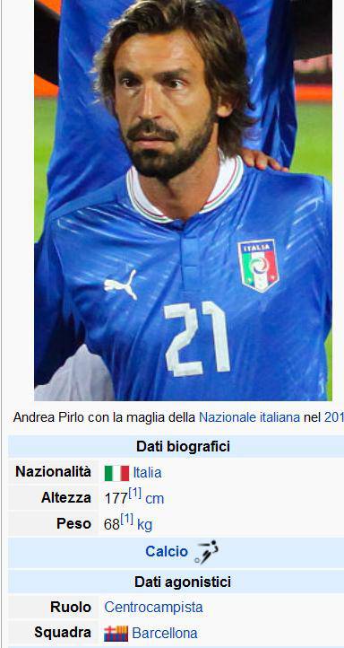 FOTO CALCIOMERCATO JUVENTUS – Su Wikipedia si legge che Andrea Pirlo sarebbe un giocatore del Barcellona e non della Juventus.