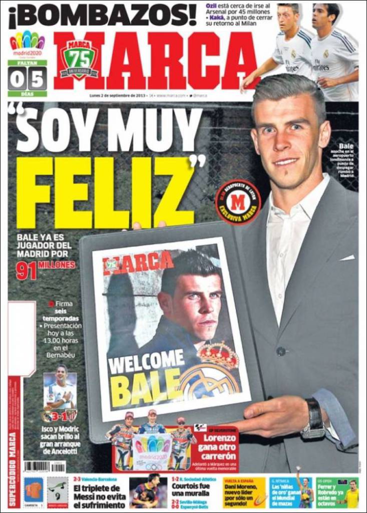 MARCA BALE – Sul quotidiano Marca si parla di Bale che pronuncia le prime parole da giocatore del Real Madrid.