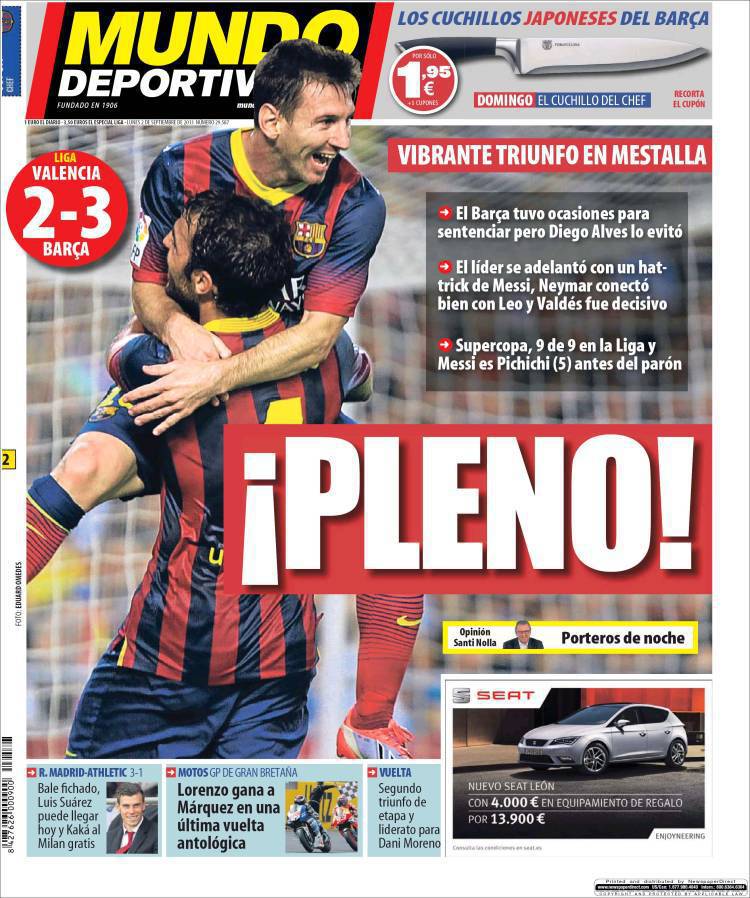 MUNDO DEPORTIVO BARCELLONA – Una tripletta di Messi permette al Barcellona di espugnare il Mestalla.