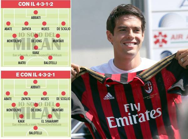 CALCIOMERCATO MILAN KAKA’ FORMAZIONE – Con l’arrivo di Kakà e Matri l’attacco del Milan potrebbe cambiare tanto. Infatti i rossoneri potrebbero utilizzare due moduli, il 4-3-1-2 con Kakà trequartista dietro le due punte Matri e Balotelli, in questo caso l’escluso sarebbe El Shaarawy. Mentre nel 4-3-2-1 invece ci sarebbe El Shaarawy accanto a Kakà con Balotelli unica punta, in questo sarebbe Matri a rimanere fuori. Di certo ci sono tante opzioni per Allegri che avrà grande abbondanza in attacco. Il Milan potrà creare vari problemi a tutte le squadre del campionato che dovranno scontrarsi contro i rossoneri.