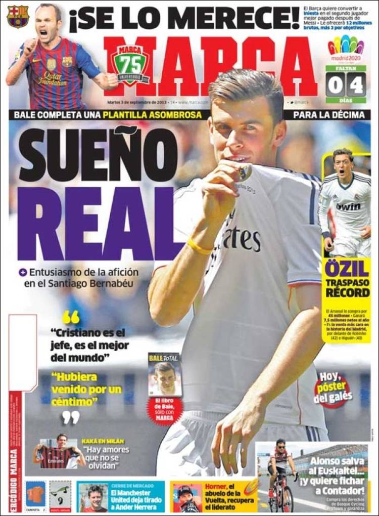 MARCA BALE – Con l’arrivo di Bale il tecnico del Real Madrid Ancelotti ha una rosa importante.