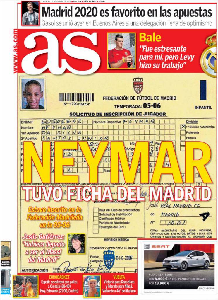 AS NEYMAR – Sul quotidiano As viene rivelato un documento che riguarda Neymar che sette anni fa faceva parte della lista del Real Madrid.