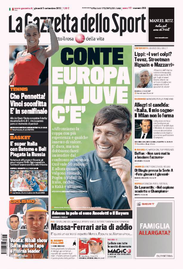 GAZZETTA CONTE – Sulla Gazzetta dello Sport vengono riportate le dichiarazioni di Antonio Conte, tecnico della Juventus che parla del cammino in Champions League.