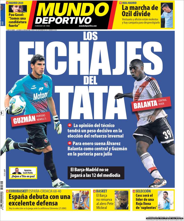 MUNDO DEPORTIVO MARTINO – Per gennaio il tecnico del Barcellona ha deciso di fare alcuni acquisti, Guzman portiere del Newell’s e Balanta, difensore del River.