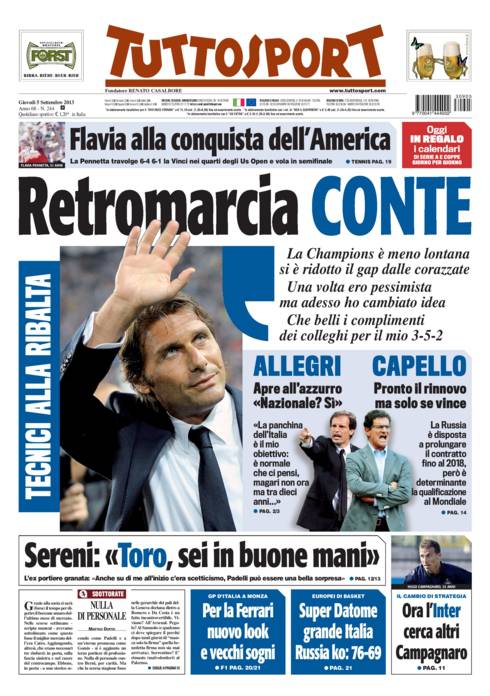 TUTTOSPORT CONTE – Conte è meno pessimista riguardo il cammino in Champions League della sua Juventus.