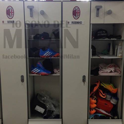 MILAN KAKA’ ARMADIETTO – Ricardo Kakà è finalmente tornato al Milan: lo aspettava Galliani così come lo facevano i numerosi tifosi rossoneri. Non ci vorrà molto tempo per il brasiliano per riambientarsi in un luogo, Milanello, dove è cresciuto e ha vissuto i migliori momenti dal punto di vista professionale e umano. Intanto ecco dove Kakà ha scelto il suo armadietto. Come si vede dalla foto, Ricky ha optato per quello di fianco a Robinho, suo grandissimo amico. All’interno degli scompartimenti c’è già l’occorrente per tornare ad essere protagonista con la maglia del Milan. E chissà se quelle scarpette saranno quelle che Kakà utilizzerà contro il Torino per l’esordio stagionale con i rossoneri…