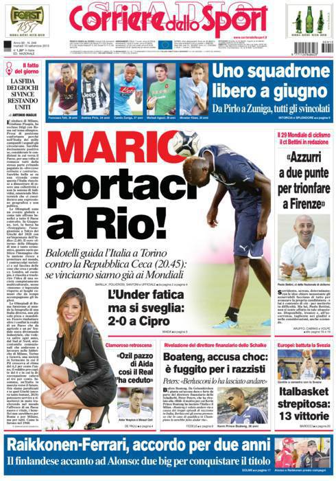 CORRIERE BALOTELLI – Il Corriere dello Sport incita Balotelli a portare la Nazionale in Brasile.