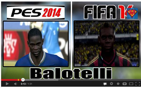VIDEO PES 2014 FIFA 14 – Sono state pubblicate le due demo di Pro Evolution Soccer 2014 e di Fifa 14. I due colossi videoludici nel campo del calcio si sfideranno come ogni autunno a suon di copie vendute. In rete sono già comparsi i primi video riguardanti le due demo in questione e fra i tanti ne abbiamo pescato uno che mette a confronto la grafica, per la precisione le facce, dei due giochi. Balotelli, El Shaarawy, Abate e molti altri calciatori, confrontati da vicino: qual è la versione migliore secondo voi?