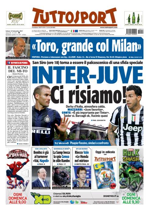 TUTTOSPORT INTER JUVENTUS – Su Tuttosport si parla di Inter-Juventus, big match di campionato che si giocherà alle 18.