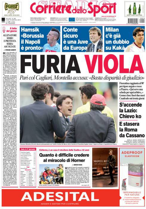 CORRIERE FIORENTINA – La Fiorentina accusa gli arbitri dopo l’evidente rigore negato contro il Cagliari.