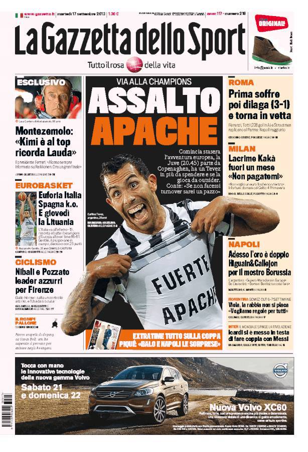 GAZZETTA APACHE – Sulla Gazzetta dello Sport si parla della Juventus che dovrà giocare contro il Copenhagen in Champions League.