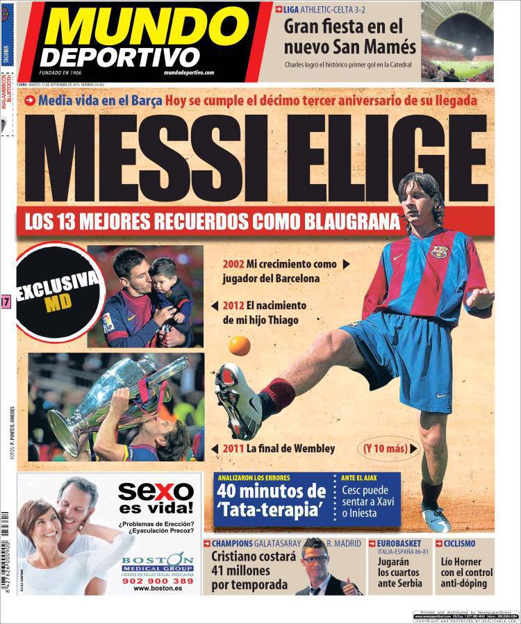 MUNDO DEPORTIVO MESSI – Sul quotidiano Mundo Deportivo Lionel Messi sceglie i migliori ricordi da quando è un giocatore del Barcellona.