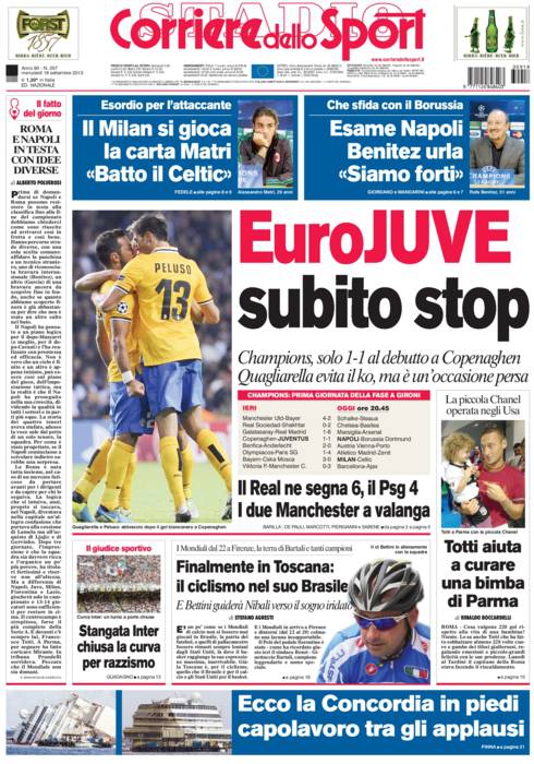 CORRIERE JUVENTUS – La Juventus pareggia contro i danesi del Copenhagen, tante occasioni fallite dai bianconeri.