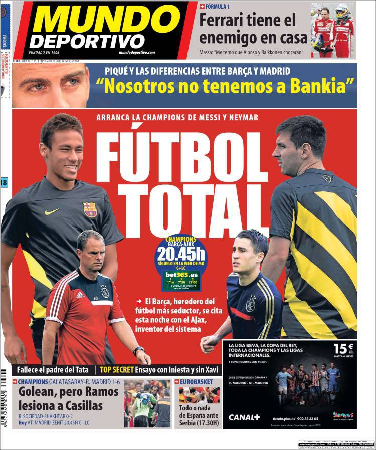 MUNDO DEPORTIVO BARCELLONA – Sul quotidiano Mundo Deportivo si parla del Barcellona che affronterà l’Ajax nella sfida dei cultori del calcio totale.