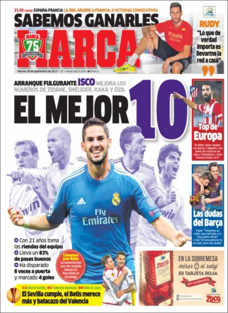 MARCA ISCO – Sul quotidiano Marca si parla di Isco che si sta ben comportando e ha numeri migliori dei 10 del passato del Real Madrid.