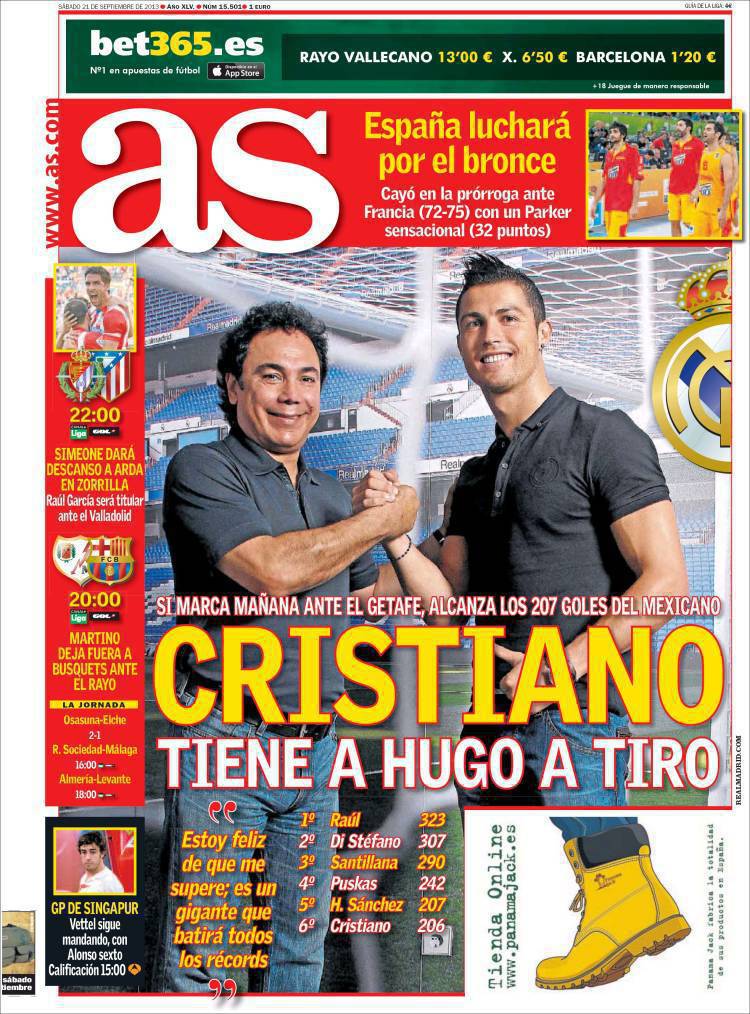 AS RONALDO – Sul quotidiano As si parla di Ronaldo che ha Hugo Sanchez nel mirino in termini di realizzazioni.