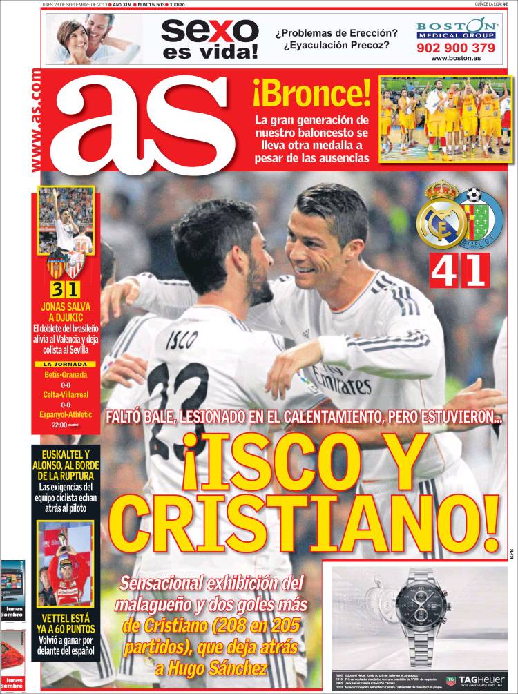 AS RONALDO ISCO – Sul quotidiano As si parla di Ronaldo e Isco, due talenti del Real Madrid.