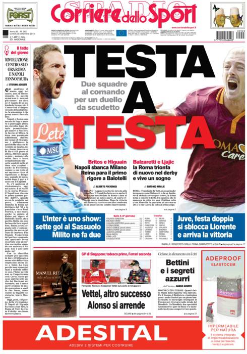 CORRIERE NAPOLI ROMA – Il Corriere dello Sport parla giustamente del testa a testa tra Roma e Napoli.