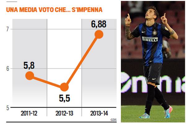INTER ALVAREZ FANTACALCIO MEDIA VOTO – Prima abbiamo parlato della risurrezione di Ricardo Alvarez, talento argentino dell’Inter, che ha preso per mano la squadra di Mazzarri in questo inizio campionato. Non solo i voti della Gazzetta, basta pensare anche alla media voto del Fantacalcio che rispetto allo scorso anno e a quella di due anni fa, è schizzata alle stelle. Oggi Alvarez è un calciatore davvero importante e i fantaallenatori che hanno puntato su di lui hanno avuto ragione. Media da 6,88, qualcosa di importante, Alvarez vuole continuare su questa strada.