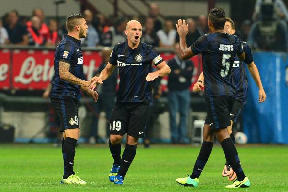 SERIE A INTER FIORENTINA – Entrambe a caccia dei tre punti per agganciare Juventus e Napoli al secondo posto in classifica, Inter e Fiorentina si sono affrontate questa sera nel posticipo della quinta giornata di Serie A. Ad avere la meglio, tra le mura del Giuseppe Meazza, sono i nerazzurri di Walter Mazzarri. Dopo un primo tempo terminato a reti inviolate, ad andare in vantaggio sono però gli ospiti: al 60′ Joaquin conquista un calcio di rigore che viene trasformato da Rossi. La risposta dei nerazzurri si fa attendere dodici minuti, quando è Cambiasso a pareggiare i conti. A sette minuti dal novantesimo, ci pensa invece Jonathan a siglare il sorpasso nerazzurro e fissare il punteggio finale sul 2-1.