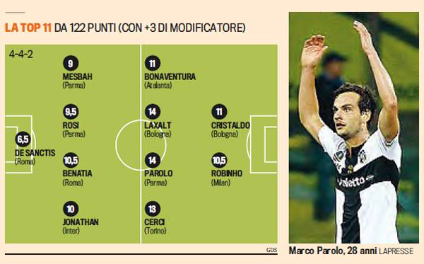 FANTACALCIO TOP 11 ROBINHO CRISTALDO LAXALT – La Gazzetta dello Sport propone la top 11 dei giocatori che nella quinta giornata ha sicuramente fatto bene. C’è molto Bologna soprattutto dal centrocampo in su, sulla mediana infatti c’è Laxalt assieme a Parolo, Cerci e Bonaventura. In attacco invece Cristaldo assieme al brasiliano del Milan Robinho. Difesa a quattro con tanto di modificatore che porta i tre punti. Difesa con Mesbah, Rosi, Benatia e Jonathan, mentre in porta De Sanctis della Roma. Una rosa che ha totalizzato 122 punti, una squadra quindi importante che potrebbe fare bene anche nella realtà.