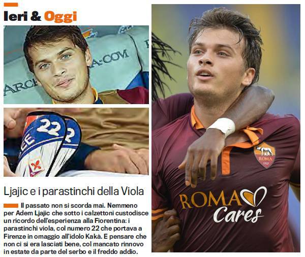 ROMA LJAJIC FIORENTINA – Al cuor non si comanda. Adem Ljajic ieri ha segnato il terzo gol con la maglia della Roma entrando sempre dalla panchina. Uno dei migliori acquisti per Garcia, Ljajic si sta inserendo benissimo nel discorso Roma. Eppure il giocatore serbo continua a non dimenticare la sua vecchia squadra, ovvero la Fiorentina. Infatti la Gazzetta dello Sport ha ripreso la foto dei parastinchi di Ljajic che sono ancora con il marchio della Fiorentina e il numero 22, ovvero quello che aveva a Firenze in omaggio all’idolo Kakà. Un amore finito male però…
