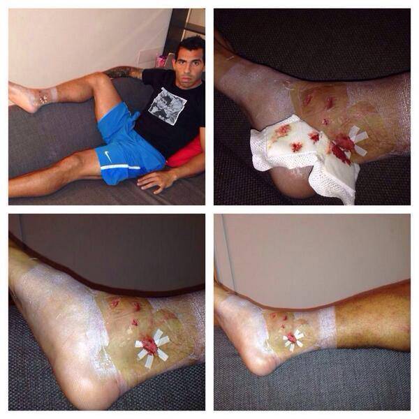 TORINO JUVENTUS CAVIGLIA TEVEZ – Non si placano le polemiche post derby di Torino. Nella tarda serata di ieri l’attaccante della Juventus, Carlitos Tevez, ha pubblicato sul proprio profilo Twitter le foto della propria caviglia malandata dopo il fallaccio di Immobile sullo stesso Apache, il tutto commentato dalla frase «Noi vinciamo sempre con un aiuto, è per questo che adesso sto così… E solo giallo per quello che quasi mi rompe la caviglia».