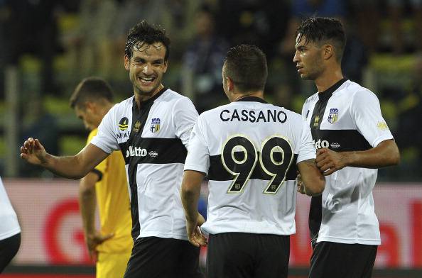 SERIE A PARMA SASSUOLO ANTONIO CASSANO- Dal paradiso all’inferno e ritorno. Il Parma batte, non senza soffrire, il Sassuolo per 3-1. Servito da Antonio Cassano, gran colpo del calciomercato parmense, è Palladino a sbloccare il risultato al 32′. In pieno recupero del primo tempo, però, il Sassuolo guadagna un calcio di rigore con conseguente espulsione per il portiere del Parma Mirante: Berardi pareggia. Nella ripresa si scatena però Cassano si scatena, e serve prima a Rosi l’assist per il 2-1 e segna successivamente il gol del 3-1. Sul risultato di parità il Sassuolo ha colpito un palo con Floro Flores. Nel finale di partita è invece stato espulso Magnanelli.