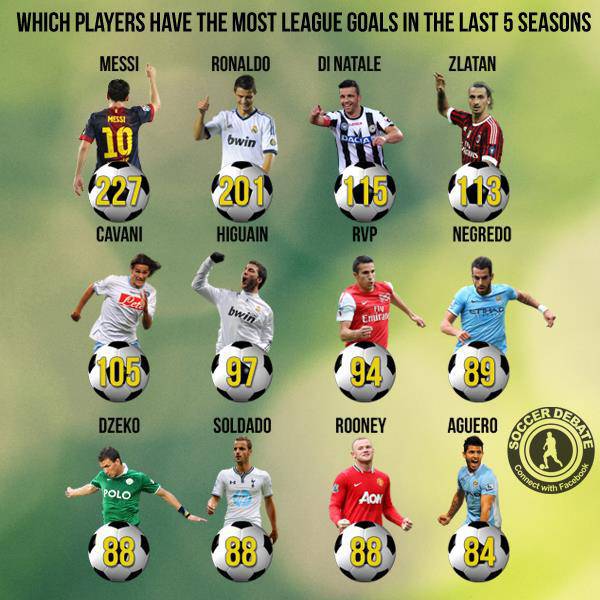 FOTO GOL – Chi sono i giocatori più prolifici delle ultime cinque stagioni? Al primo posto, manco a dirlo, c’è l’extraterrestre Messi con la bellezza di 227 gol. In seconda posizione spazio all’altro mostro sacro del calcio mondiale ovvero Cristiano Ronaldo con 201 marcature. In terza posizione? Un italiano! Si tratta di Antonio Di Natale, bandiera dell’Udinese con 115 gol. Davvero niente male considerando che Totò è davanti a gente come Ibrahimovic (113), Cavani (105) e Higuain (97). Una bella nota questa del capitano dei friulani, piccolo campione in mezzo a fenomeni dal valore economico plurimilionario.