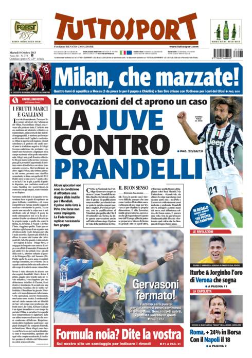 Tuttosport: La Juve contro Prandelli 08/10/2013 di Admin3 TUTTOSPORT PRANDELLI – Le convocazioni di Prandelli fanno arrabbiare la Juventus. La redazione di Calciomercatonews.com