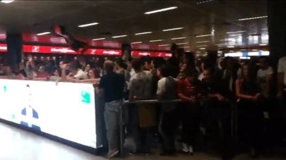 VIDEO TIFOSI ROMA FIUMICINO – Sembrano passati secoli dalla scorsa stagione quando la Roma arrivava a Fiumicino tra l’indifferenza dei tifosi e le contestazioni. Gli scarsi risultati della squadra, infatti, avevano allontanato i sostenitori dalla squadra e lo scorso agosto, i fischi alla presentazione della squadra non sono mancati. Oggi, però, la squadra di Rudi Garcia ha già scritto pagine importanti al punto che non solo i tifosi si sono riavvicinati alla squadra ma l’attendono a Fiumicino in piena notte per sostenerla e incoraggiarla. E’ accaduto lo scorso weekend quando, dopo la netta vittoria sull’Inter, la Roma è stata accolta a Fiumicino da circa 1000 tifosi entusiasti.