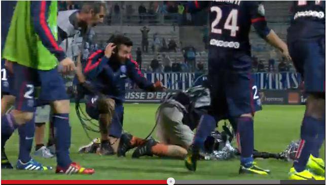 VIDEO LAVEZZI IBRAHIMOVIC – E’ un Lavezzi in versione burlone quello visto al termine del match Psg-Marsiglia vinto poi dai parigini per 2-1. Quando una partita finisce, come di consueto, i giocatori si dirigono nel cerchio di centrocampo per salutarsi, scambiarsi le maglie e dare la mano agli arbitri. In mezzo a tutto questo troviamo i cameramen i quali, con la cinepresa in spalla, fanno vedere ai telespettatori da vicino cosa succede in mezzo al rettangolo verde. Il Pocho, contento forse per la vittoria ottenuta dai suoi, si è accovacciato davanti ad uno sfortunato cameramen il quale, data la pesante attrezzatura in spalla, non ha visto l’ostacolo ed è caduto per terra assieme ai suoi strumenti. Ibrahimovic, che stava passando in quel momento, non ha potuto far altro che sorridere allo scherzo escogitato dal diabolico Lavezzi.