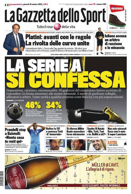 GAZZETTA SERIE A – Sulla Gazzetta dello Sport clamorosa intervista anonima a 50 giocatori della Serie A che hanno risposto alle domande più dure e difficili.
