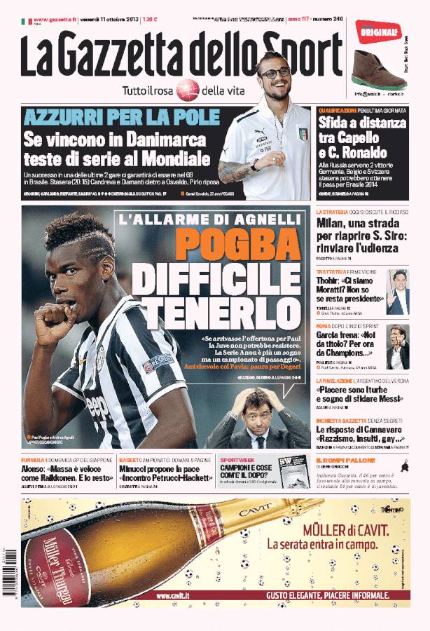 GAZZETTA POGBA – Il presidente della Juventus Agnelli lancia l’allarme riguardo alla situazione di Pogba.