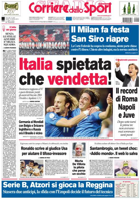 CORRIERE ITALIA – Due a due contro la Danimarca permette all’Italia di vendicarsi con i danesi dopo il biscotto del 2004.