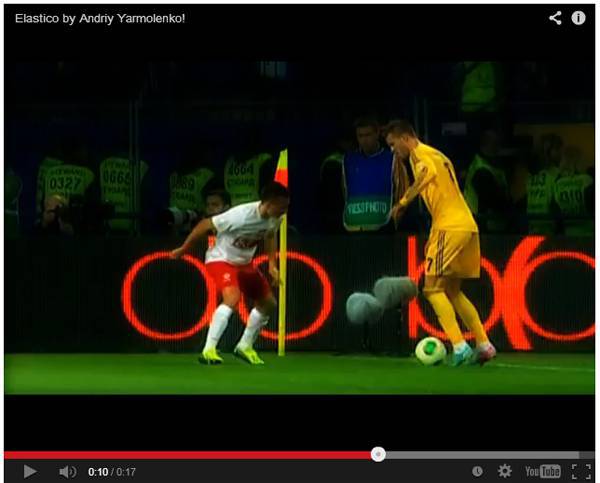 VIDEO UCRAINA POLONIA QUALIFICAZIONI MONDIALI ELASTICO YARMOLENKO- Un gesto tecnico straordinario. Andriy Yarmolenko, attaccante classe 1989 della Nazionale ucraina che gioca con la Dinamo Kiev, nella partita valida per le qualificazioni ai mondiali fra Ucraina e Polonia e vinta dai padroni di casa per 1-0, ha effettuato, largo sulla fascia destra, un elastico fantastico su Peszko. Yarmolenko è fra l’altro anche l’autore del gol che ha regalato tre punti agli ucraini, permettendo così alla sua nazionale di restare in corsa per la qualificazione diretta (l’Inghilterra, prima iin classifica, ha un solo punto di vantaggio) e di essere ormai certa di poter partecipare agli spareggi.