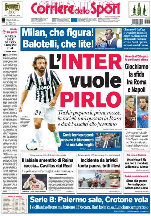 CORRIERE INTER PIRLO – La bomba del Corriere dello Sport parla di Pirlo che è nel mirino dell’Inter di Thohir.