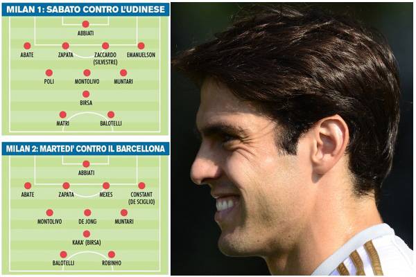 MILAN FORMAZIONI UDINESE BARCELLONA – Per il Milan sta per iniziare una settimana fondamentale. Prima il match di campionato contro l’Udinese e poi la sfida di Champions contro il Barcellona. Massimiliano Allegri ha le idee chiare e ha già pensato alle due squadre che metterà in campo. Contro l’Udinese, il Milan scenderà in campo con Abbiati tra i pali, Abate, Zapata, Zaccardo o Silvestre ed Emanuelson in difesa. Montolivo, De Jong e Muntari a centrocampo. Birsa sulla trequarti con Matri e Balotelli in attacco. Contro il Barcellona, invece la squadra sarà uguale salvo alcune eccezioni. In difesa tornerà Mexes di Zaccardo e Constant o De Sciglio prenderanno il posto di Emanuelson. Il centrocampo sarà identico mentre come trequartista tornerà Kakà con Robinho al fianco di Balotelli.