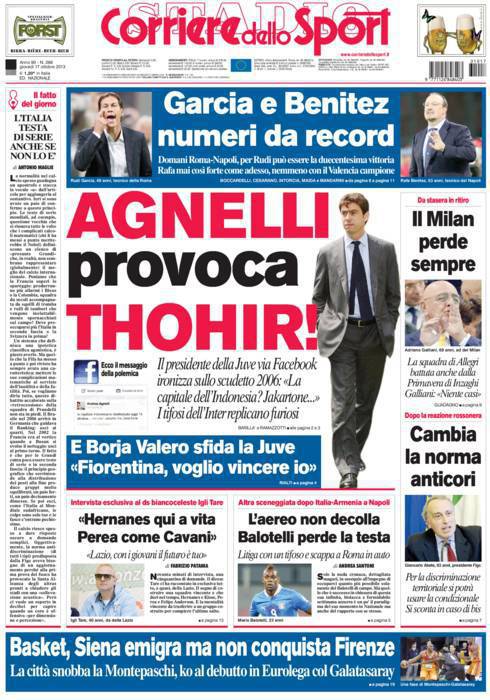 CORRIERE AGNELLI THOHIR – Sul Corriere dello Sport si parla di Agnelli che prova Thohir con una battuta molto infelice.