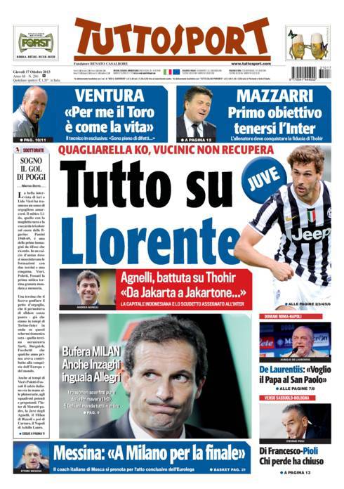 TUTTOSPORT LLORENTE – Su Tuttosport si parla di Llorente che ora è l’unico attaccante disponibile nella Juventus.