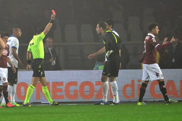 TORINO INTER PAGELLE VOTI – Succede di tutto e di più fra Torino e Inter nel posticipo dell’ottava giornata di Serie A. A partire dal 5′, quando Handanovic atterra Cerci in area di rigore provocando la sua espulsione e il penalty in favore degli avversari. Dal dischetto va lo stesso Cerci che si fa parare il calcio di rigore dal neo entrato Carrizo. Il vantaggio dei granata è però dietro l’angolo e ed è Farnerud a siglarlo al 21′. In pieno recupero ci pensa Guarin in rovesciata a pareggiare i conti, ma al 54′ il Toro va nuovamente avanti grazie a Immobile. Poi tra il 55′ e il 71′ il solito Palacio mette a segno una doppietta ed è sorpasso nerazzurro. Al 90′ è Bellomo a rovinare la festa degli ospiti, andando in rete con una punizione da favola grazie alla complicità di Carrizo. Queste le pagelle del match.