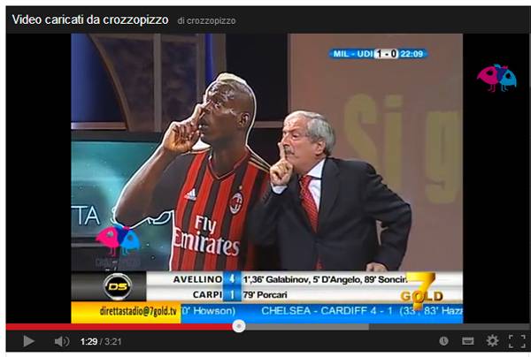 MILAN UDINESE BIRSA VIDEO CRUDELI- Come al solito Crudeli ha dato spettacolo durante la partita del Milan. In occasione del gol di Valter Birsa, decisivo per la vittoria contro l’Udinese, si è infatti alzato ed è corso ad abbracciare e a baciare la sagoma di Mario Balotelli (posizionata accanto a lui nello studio). Indicando poi il suo collega Corno, Crudeli ha detto alla sagoma: “Valter Birsa l’ha messa, Mario, digli di stare zitto! Ed è gol, ed è gol, ed è gol. E andiamo, e andiamo, e andiamo!”. Vi mettiamo di seguito il video dello show di Crudeli di ieri sera.