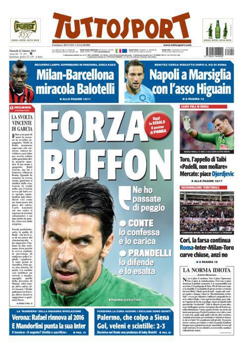 TUTTOSPORT BUFFON – Momento difficile per Buffon che però viene protetto da Conte e Prandelli.
