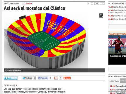 BARCELLONA REAL MADRID COREOGRAFIA- Superata con un buon pareggio la trasferta di Milano, il Barcellona pensa alla sfida di sabato pomeriggio contro il Real Madrid di Carlo Ancelotti. Stando a quanto riportando diversi media spagnoli, la coreografia a tutto stadio che dovrebbe andare in scena è davvero straordinaria: è questo mosaico con i colori del Barcellona e della Catalogna su cui si leggerà la scritta ‘Força Tito’, in onore all’ex allenatore Tito Vilanova, che ha dovuto lasciare la panchina blaugrana per proseguire la lotta contro il cancro. Sono oltre vent’anni che il ‘Camp Nou’ compone mosaici in occasione di questa partita, ma in questo caso la vera sfida è quella di Vilanova.