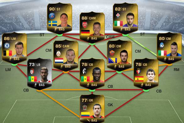 FUT TEAM FOTO – Il FUT Team di questa settimana vede la presenza di una buona percentuale di giocatori che sono stati – o lo sono tutt’ora – protagonisti nella Serie A italiana. Tra questi bisogna subito citare Pepito Rossi, autore di una storica tripletta che ha permesso alla Fiorentina di stendere la Juventus e Pjanic, serbo della Roma capace di segnare una doppietta al Napoli con la maglia della Roma. Ecco poi l’outsider Cigarini, assieme a Sneijder e Ibrahimovic, altri due che il nostro campionato lo conoscono eccome. Dietro le due punte troviamo Ozil, tedesco che nell’Arsenal ha trovato la sua dimensione perfetta. La difesa di questo 3-4-3 è piuttosto inedita: Ospina in porta con Souarè, Diagne e Arribas a completare la linea.