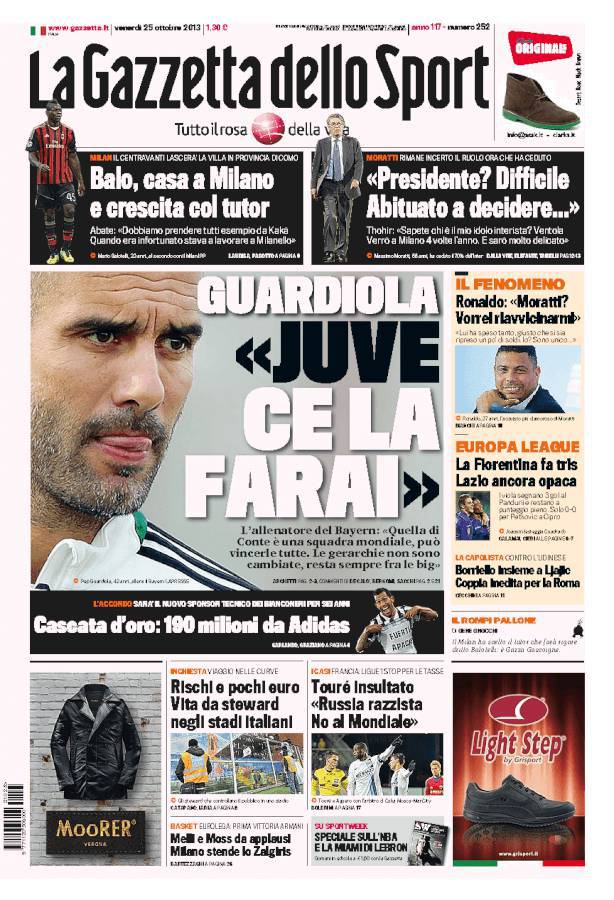 GAZZETTA GUARDIOLA – Pep Guardiola è convinto che la Juventus potrà passare il turno di Champions League anche se la situazione non è facile.