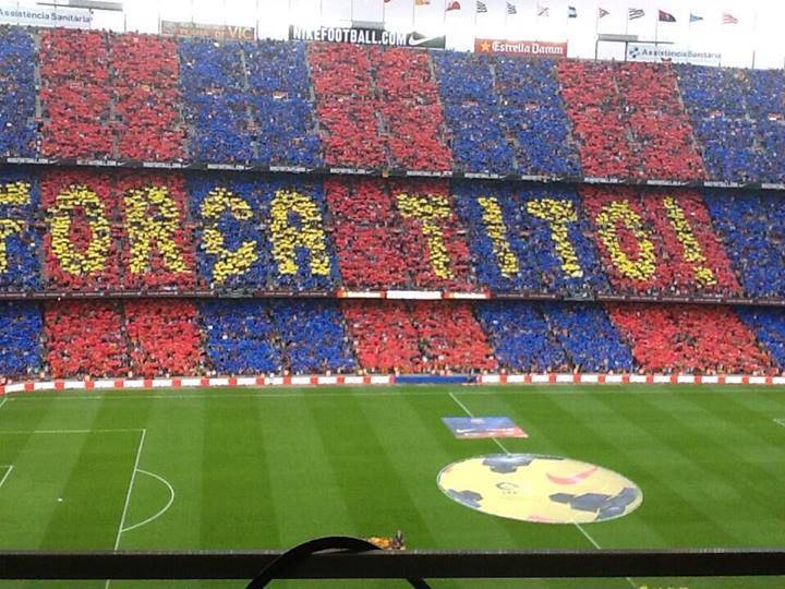 BARCELLONA REAL MADRID – Davvero uno spettacolo nello spettacolo al Camp Nou. I tifosi del Barcellona hanno colorato di blu e di granata lo stadio per una splendida coreografia in onore di Tito Vilanova, il tecnico dei catalani che sta lottando contro il cancro.