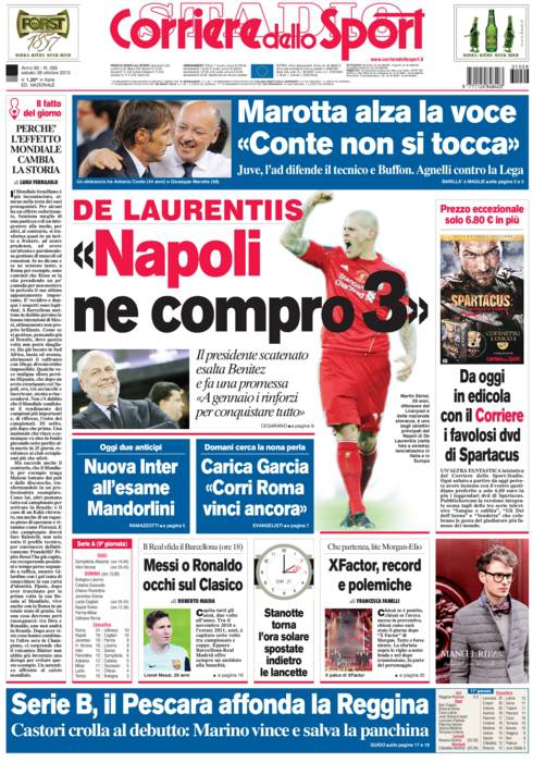 CORRIERE DE LAURENTIIS – Sul Corriere dello Sport si parla di De Laurentiis che annuncia tre colpi per gennaio.